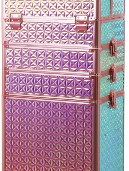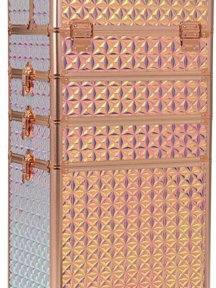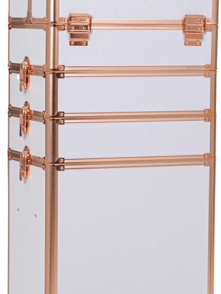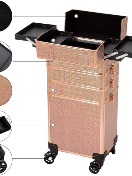 4 in 1 Portable Traveling Aluminum Professional Makeup Trolley Cart with Multiple-Sized Compartments and Wheels (baby’s breath gold)