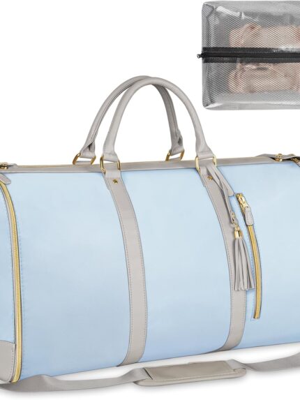 Garment Duffle Bags for Travel, Convertible Travel Garment Bag with Shoulder Strap, Large Carry on Garment Bag Weekender Bag for Women with Shoe Pouch, 2 in 1 Hanging Suitcase Travel Bags, Blue