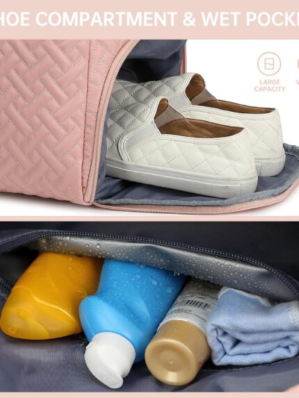 Duffle Bag for Travel, Weekender Bag with Shoe Compartment, Carry On Overnight Bag for Women with Toiletry Bag, 50L Gym Bag with Wet Pocket, Hospital Bags for Labor and Delivery
