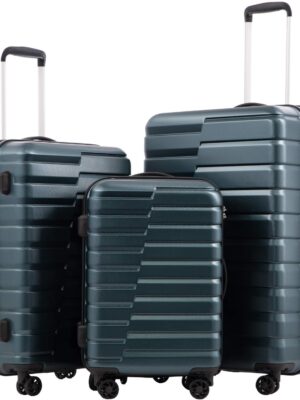 Luggage Set of 3 Hardside Carry on Suitcase Sets with Spinner Wheels & lock, Portable Lightweight ABS Luggages for Travel, BusinessDark Green (20/24/28)