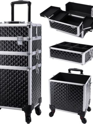 - Durability: The rolling Cosmetic Makeup trolley is built with high quality Aluminum frame, ABS surface, Velvet lining, reinforced stainless Steel Corners, 360 degree 4-Wheel and 2 keys