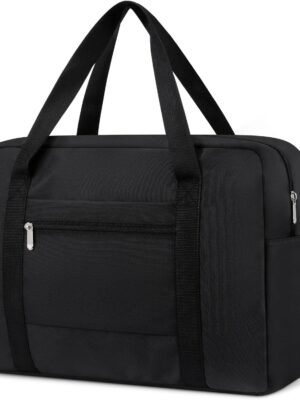 Travel Duffle Bag, Weekender Travel Bag Men Small Gym Bag for Women, Hospital Bag for Labor and Delivery, Overnight Bag Luggage Bag with Trolley Sleeve, Airplane Travel Essentials for Flying(Black)