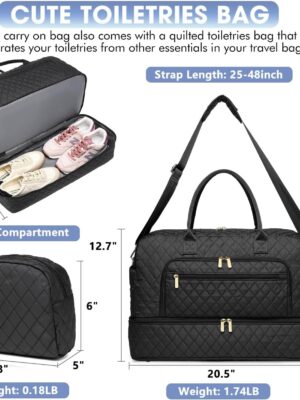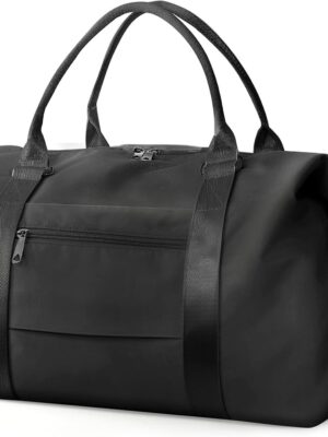 Large Women Travel Duffle Bag – Carry on Overnight Bag Weekend Travel Duffel Tote Bag Yoga Gym Bag with Wet Pocket Toiletry Weekender Overnight Bag for Travel Business Trips Sport Hospital Black